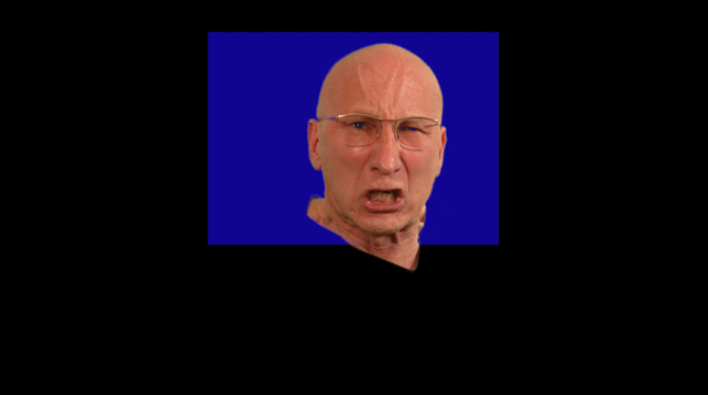 Dumpfer Herzschlagrhythmus, ein körperloser Kopf lässt die Lippen tonvoll schlabbrig vibrieren. Die Frequenz steigert sich, bis der schwarze Bildgrund