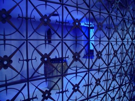 In der Sakristei hängt - für die Gemeinde nicht zugänglich - ein leuchtender Blaukasten,